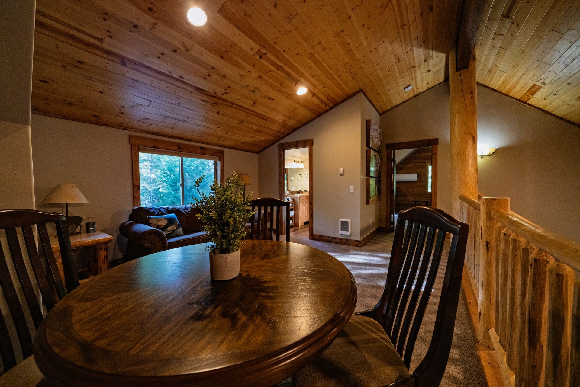 Welcome to the Tamarack Cabin, your perfect getaway in the stunning Whitefish, Montana! Our largest cabin on the property is a delightful two-level retreat boasting 1,600 square feet of cozy living space, perfect for groups of up to ten. Relax in the welcoming living room featuring a gas fireplace, prepare delicious meals in the fully equipped kitchen, and enjoy the convenience of two bathrooms alongside three bedrooms, including a lavish master suite. Step out onto the covered back porch to unwind among the pine trees and soak in the soothing sounds of Montana, all while being just moments away from the historic Glacier National Park and the picturesque town of Whitefish. Come forge unforgettable memories with us and reserve your stay at the Tamarack Cabin!