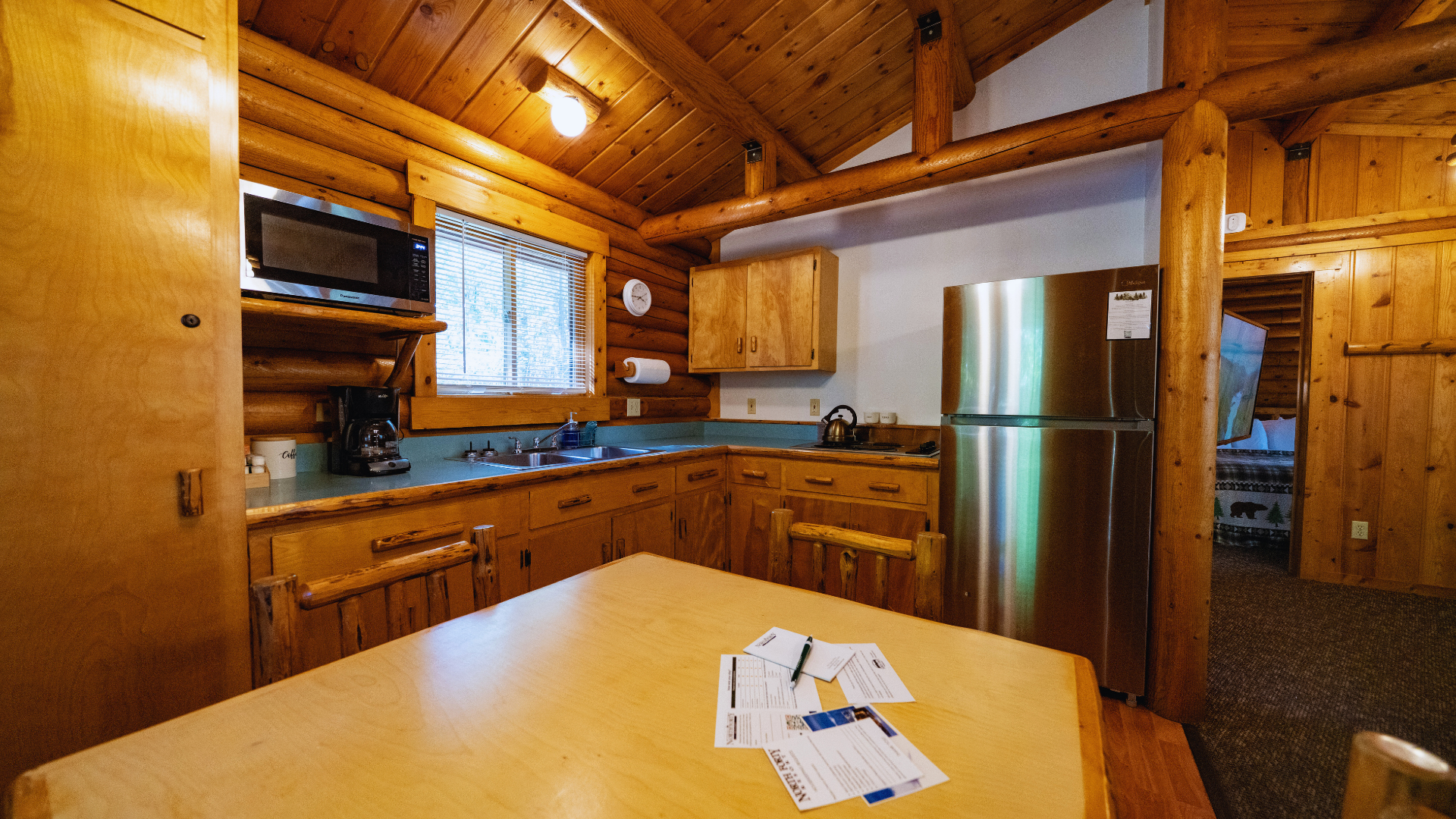The Tamarack cabin is the newest and largest cabin at the North Forty Resort. With 3 private bedrooms and sleeper sofas it can sleep up to 10 guests.